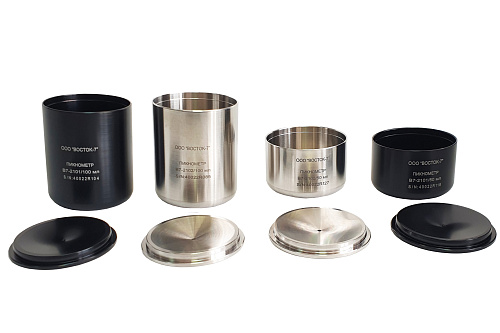 Пикнометр металлический представляет из себя чашку цилиндрической формы и крышку для её закрывания с переливным отверстием по центру для выхода излишков тестируемой жидкости. Пикнометр используется при проведении комплексных испытаний в соответствии с методиками стандартов ГОСТ 28513–90, ГОСТ Р 53654.1-2009, ГОСТ 31992.1-2012 (ISO 2811-1:2011), BS 3900 A19, DIN 53217-2, ASTM 1475, ASTM D 891-B, FTMS 141 4183, ISO 2811-1, JIS K 5600-2-4, NBN T22-110, NFT 30-020. Ближайшие аналоги –пикнометры Elcometer 1800, BYK.