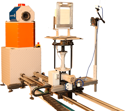 Поверяемые приборы размещаются на рабочем столе СЛП. Рабочий стол имеет возможность регулировки по высоте при помощи электропривода, а также перемещения поверяемого прибора по оси излучения.